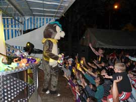 mascottes géantes, air cone, flammes réelles et virtuelles, karaoké